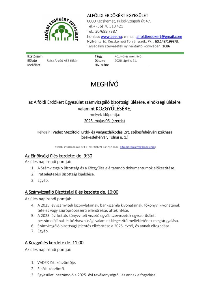 Székhely: 6000 Kecskemét, Külső Szegedi út 47.